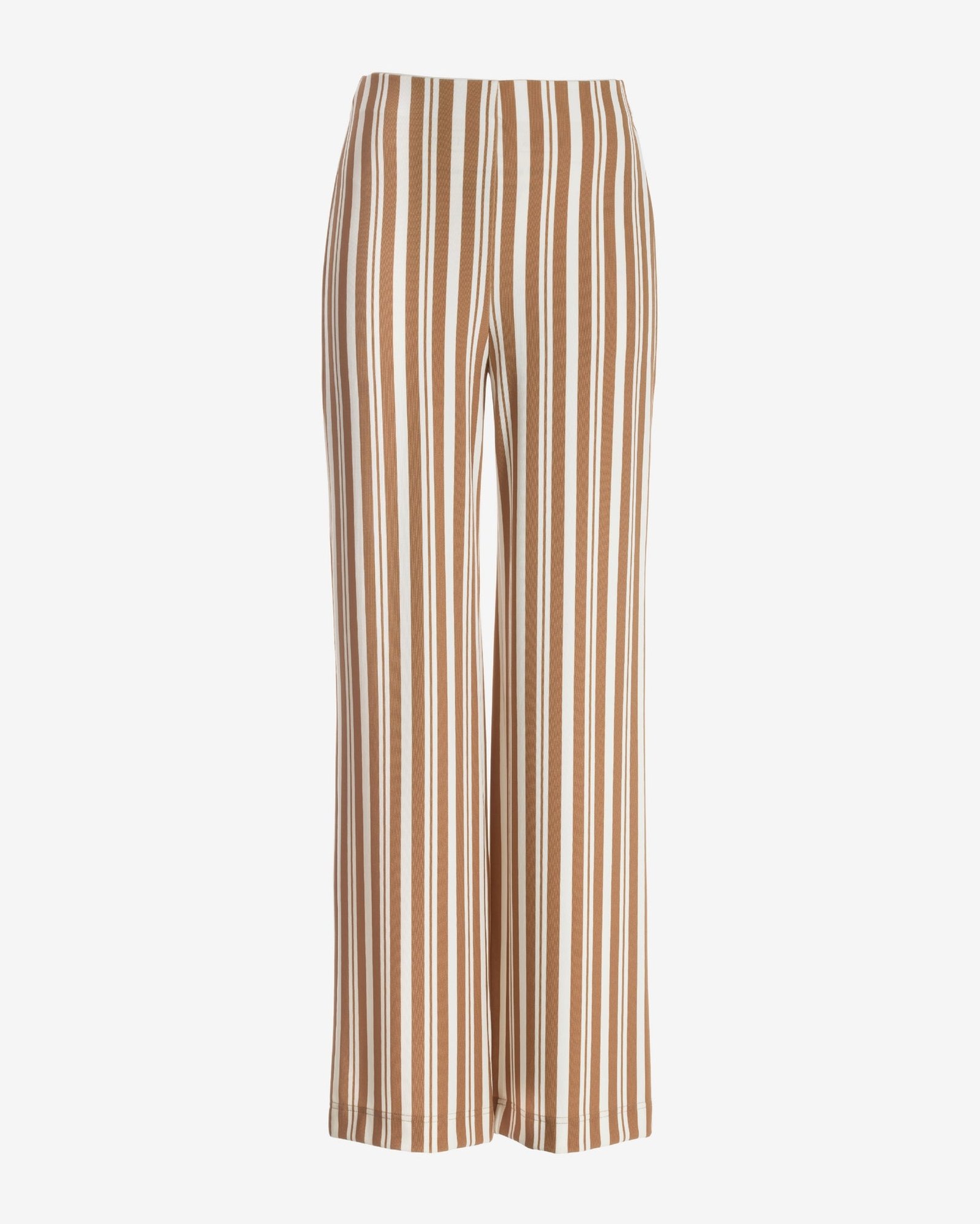 Beyond Travel Camel Stripe High Rise Palazzo Pant Camel