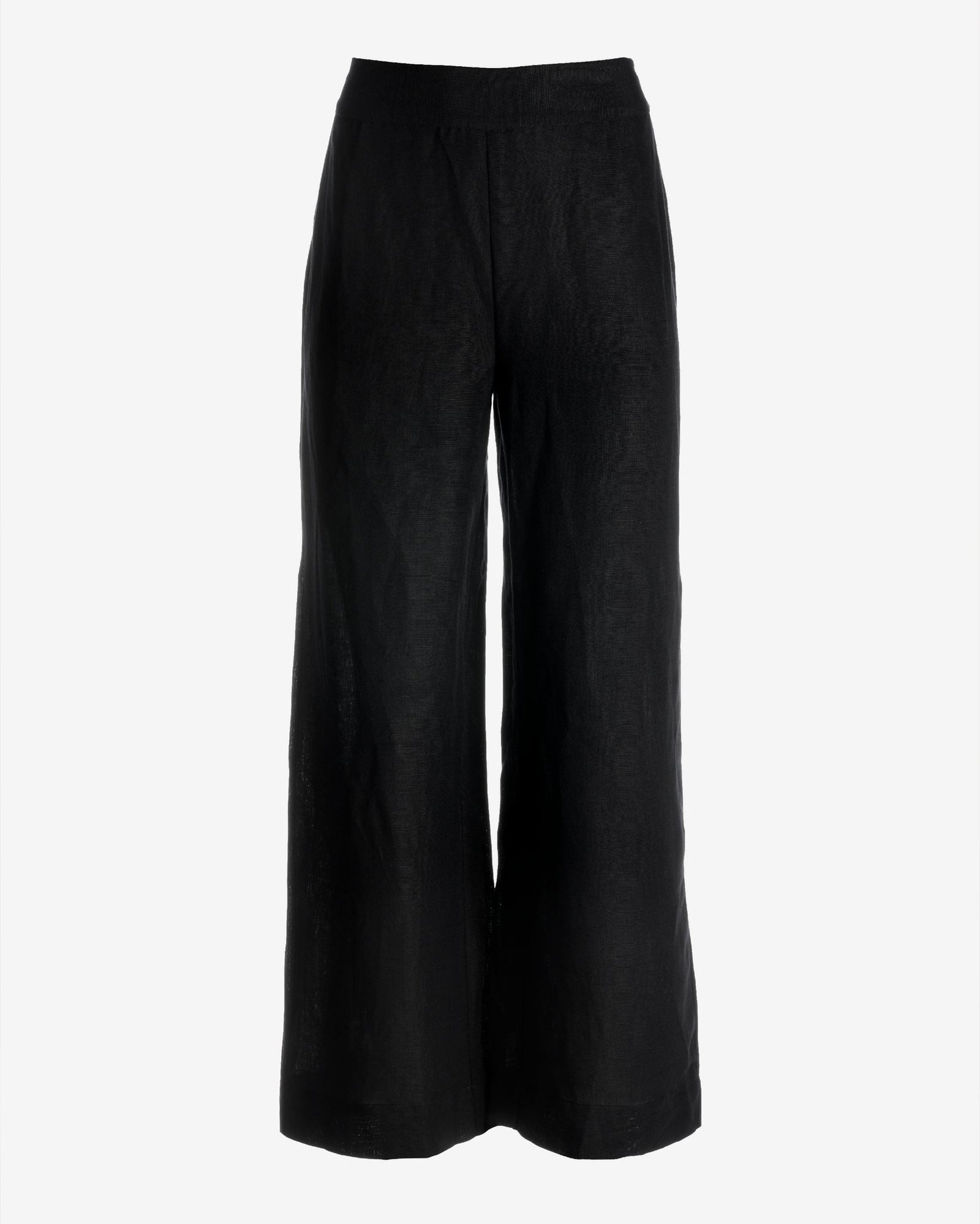 Comfortable linen-blend pant is cut in a wide-leg cropped silhouette and topped with an easy. partial stretch waist. Grab a pair in every color to create unforgettable casual or dress-up looks any day of the week.