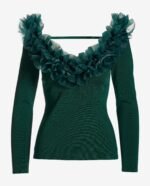 Be the first to review “Organza Ruffle V Neck Sweater Deep Emerald” Cancel reply