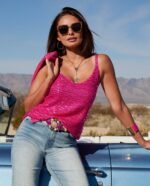 Be the first to review “Sequin V-Neck Sweater Tank Fuchsia Purple”